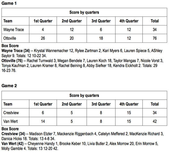 Ottoville and Wayne Trace squared off in the first game, with the Lady Big Green taking an easy victory, 76-34, in the contest.