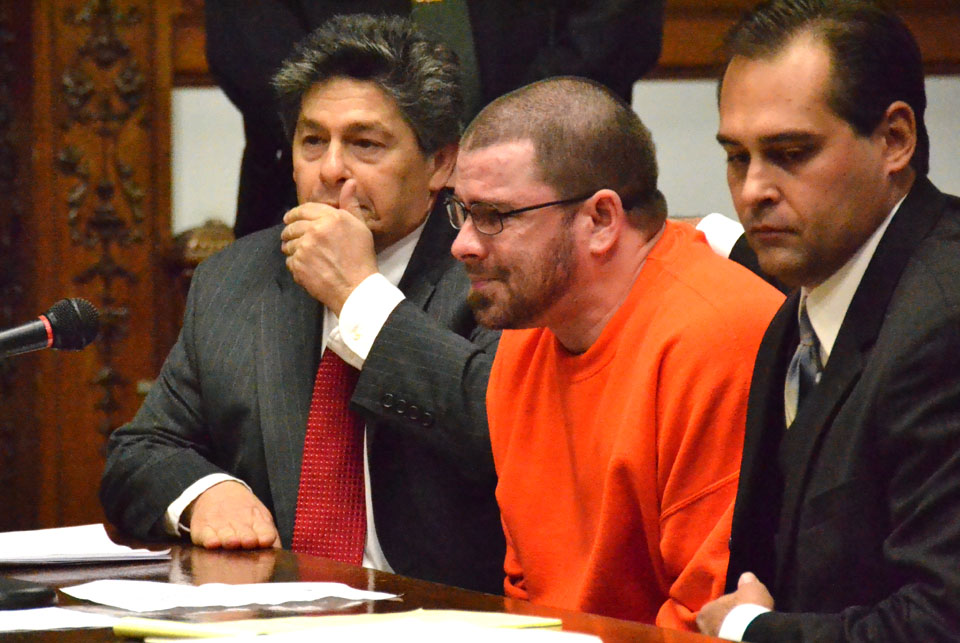 Confessed murderer Chad Phillips was sentenced to life in prison without the possibility of parole for the next 30 years for killing Chris McMillen. Here, a tearful Phillips sits following a statement he made expressing his remorse at shooting the 24-year-old McMillen, who later died of his wounds. A full story will appear later. (Dave Mosier/Van Wert independent)