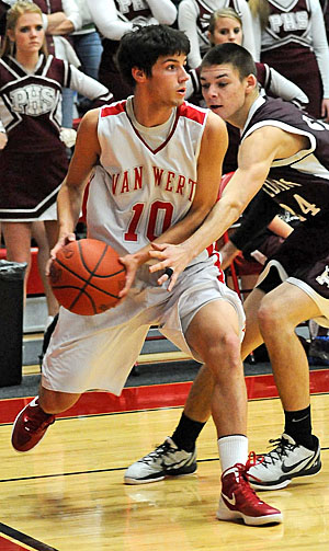 Van Wert junior AJ Smith looks for an open man during Tuesday's game against Paulding. (Jan Dunlap/Van Wert independent)