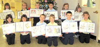 During the Advent season the students learned about what each day of "The Twelve Days of Christmas" song meant. The song was designed to provide reminders of what Christians believed in during a time when Christians in England couldn't worship as they chose. The first graders are shown with the different days of the song. During morning prayer time a new day was added to the song and the entire school sang the song each day.