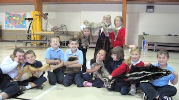 The second graders at St. Mary of the Assumption School are into habitats and food chains. Using wildlife skins and skulls supplied by the ODNR the students learned what determines if an animal is "wild" or "domestic," how to recognize wild animals and to determine what each eats. They also enjoyed a lively predator-prey game called "Fox and Rabbits." Hunting for food, water, shelter and protection was challenging and risky!