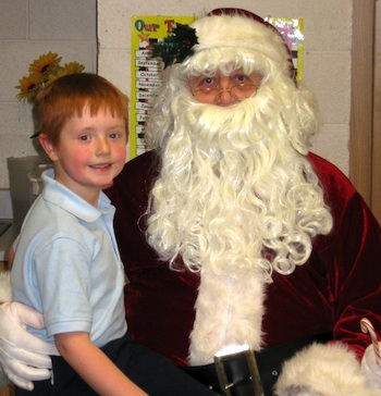 Here comes Santa Claus!!! That's what the Kindergarten and Kindergarten Plus lasses shouted as Santa was spotted in the hallway. Mr. and Mrs. Claus also visited the first and second grade classes. Each child was able to sit on Santa's lap and tell him what they wanted for Christmas. Mrs. Claus gave each child a candy cane. Mrs. Claus also told them a story about how to whisper wishes into the candy cane so that Santa's helper, Elmo, could hear them.