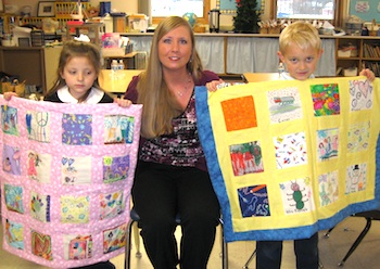 Later that day, Mrs. Langdon from the Pregnancy Life Center came and the children presented her with two baby quilts. The children had drawn pictures on a quilt square and their teachers, Mrs. Tate and Mrs. Replogle, sewed the quilts together.