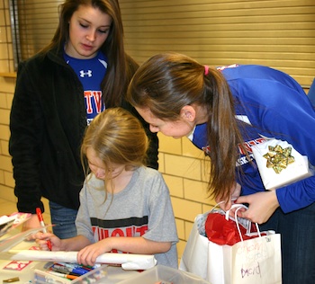 The Crestview FFCLA performed a Christmas Shop for Mrs. Wells’ elementary students. The members of the FCCLA decked Mrs. Sutton’s room with boughs of holly and other festive decorations. They then went out to Wal-Mart and picked out gifts that the kids wanted and gifts that they could give to their parents. They laid the gifts out in the room and set it up in a ‘store’ like atmosphere. The kids were able to pick out their parents’ gifts and wrap them up to give. They ended the day with a meal made from scratch and opened presents.