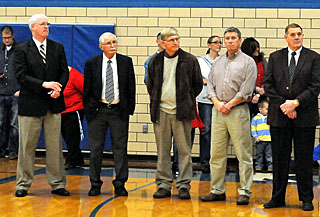 During his part of the dedication, Motycka listed many of Etzler’s coaching accomplishments, including a career record of 445-171 in 28 seasons, none conference championships, 16 sectional titles, five district titles and a regional championship.