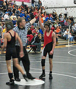 Special awards were presented for fastest pins in the least amount of time per weight class. Time was figured by average of pins by time. A minimum of three pins were needed to qualify. Winning this award from Van Wert were: