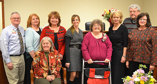 Colleagues and friends gathered (above) Friday afternoon to honor Van Wert County Juvenile Court Deputy Clerk Ruth Ann Glass (fourth from right), who is retiring after 20½ years of service to the court. Ray Able, court administrator and chief probation officer, thanked Glass for her years of service to the court and wished her the best in her retirement. “We’re glad to have had you all those years,” Able said, “and hope that you’re going to look on to better things and more fun.” Glass, who began working as a deputy clerk and court reporter in May 1991, said she enjoyed her job, but felt it was time to leave because of medical issues. She added that she was looking forward to retirement and plans to do some volunteer work in the future. (Dave Mosier/Van Wert independent)