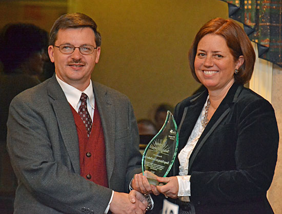 The NPAC was honored for its cultural and economic impact on the community, which was emphasized by Executive Director Paul Hoverman as he accepted the award from Chamber Board Chair Eva Yarger with the statistics he provided to the capacity audience at Willow Bend Country Club (click here for more photos).