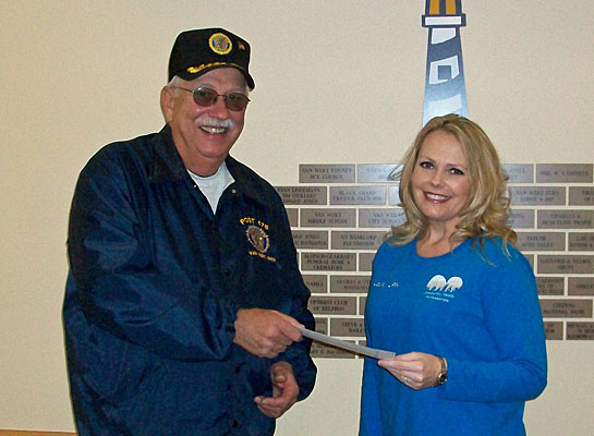 American Legion Post 178 Commander Gary Fiegel presents a donation of $500 to the Van Wert Area Inpatient Hospice Center, which was accepted by Laura Young. (Legion photo)