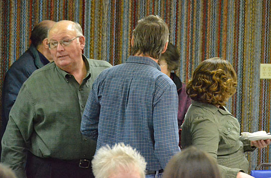 Retiring Van Wert County Fair Manager Paul Oechsle (second from left) some of those who came out Sunday for a reception honoring his service to the Van Wert County Fair. (Dave Mosier/Van Wert independent)