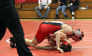 Van Wert varsity wrestlers downed both Kenton and Ottawa-Glandorf in a Western Buckeye League tri-meet held Tuesday. The Cougars defeated Kenton by a score of 52-18 and O-G 46-28.