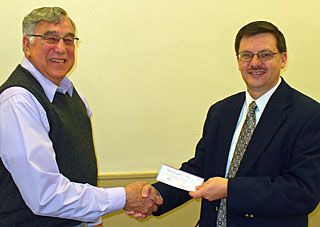 Gary Profit (left), Midwest Electric Community Connection Fund trustee, presents a $500 check to Paul Hoverman, executive director of the Niswonger Performing Arts Center of Northwest Ohio. (photos submitted)
