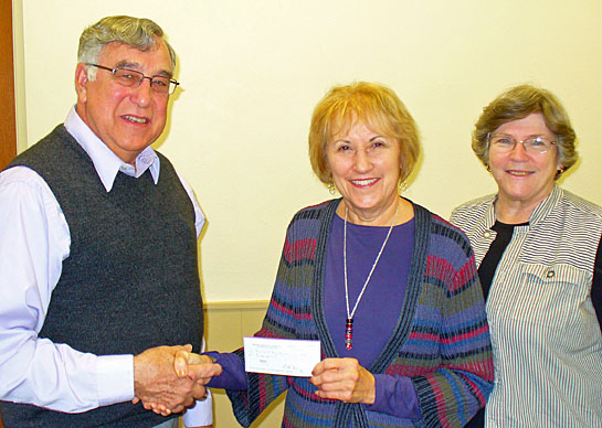 Gary Profit (left), Midwest Electric Community Connection Fund trustee, donates $500 to Linda Mechling (center) and Jean Auld, trustees of the Van Wert Area Boychoir, to fund concert apparel, music and other support.