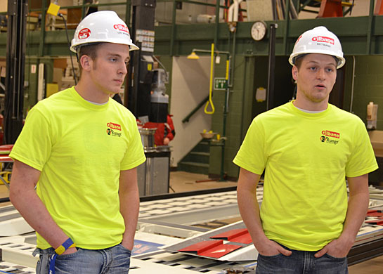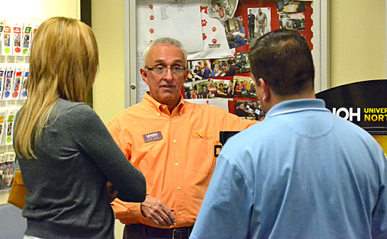 Vantage Career Center’s open house on Monday included a tour (above) provided by students in the Junior Builders program, which allows students in building trades classes to shadow Gilbane Construction workers on Vantage’s facilities project. The open house also included information booths (below) representing several area colleges and technical schools, as well as a meal served in the Vantage commons area. (Dave Mosier/Van Wert independent)