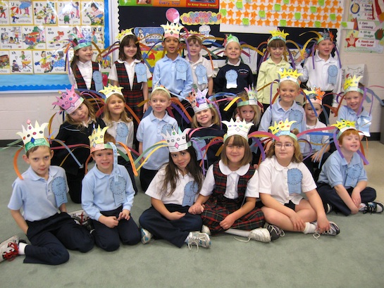 The one hundredth day of school was celebrated on Tuesday, January 31, at St. Mary of the Assumption School. Students in Kindergarten made crowns with 10 strips of construction paper attached to it -10 items stamped on each strip. They also made necklaces. Students in first grade ate 100 items after sorting them into 10 groups of 10 items. They also listed 100 items in the classroom and played games involving the number 100. Students in the second grade came up with 100 combinations of numbers that equal 100 and students in third grade made over 100 words using the super-word, “supercalifragilisticexpealidocious.” The number 100 also played a prominent part in the 4th and 5th Grade classrooms. It was an exciting and fun-filled day.
