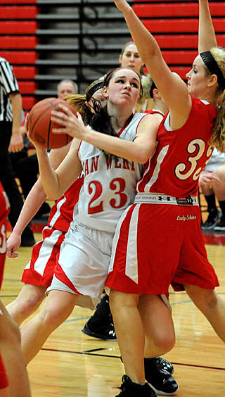 It was Seniors Night and two seniors, Alex Morrow and Brooke Keber, took a leadership role in the game. Morrow led the Cougars with 18 points, including an 8-for-8 performance at the free throw line, while Keber scored 10 points for Van Wert. Freshman Alexis Dowdy was also on, offensively, adding 13 points for the Cougars.