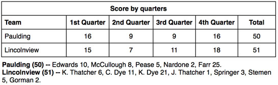 Leading the Lady Lancers was Katie Dye, with 21 points, while sister Claire added 11 points for Lincolnview. Jessica Farr led Paulding with a game-high 25 points, while Abbey Edwards scored 10 points for the Lady Panthers.