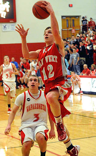 WAPAKONETA – The Van Wert Cougars played tough defense and executed their transition offense well in a 59-44 victory over Wapakoneta in Western Buckeye League boys’ basketball action.