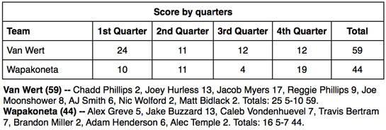Van Wert also had fewer turnovers, 10-17, than Wapak.