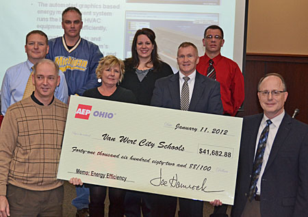 The Van Wert City Board of Education hired a new head football coach, received a big check … literally … from AEP related a lighting/HVAC program and also heard information from the high school Robotics Club and updates on the elementary construction project and Race to the Top grant program.