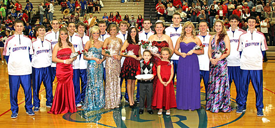 Members of the Crestview High School 2012 Homecoming Queen Brooke Nofer and her court are shown during the ceremony held Friday night in the gymnasium (more photos at www.gibbysphoto.com). (photo by Gibby’s Photo)