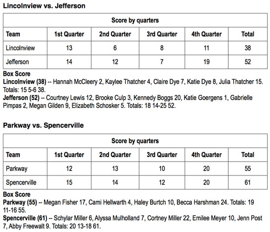 The Bearcats were led by Cortney Miller’s 22 points, while Emilee Meyer scored 10 points and Abby Freewalt added 9 counters for Spencerville. Parkway was led by Becca Harshman, who led the game offensively with 24 points, while Megan Fisher had 17 points and Haley Burtch added 10 for the Lady Panthers.