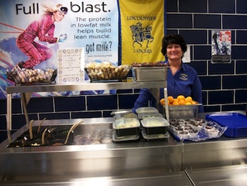The Lincolnview cafeteria has begun offering a salad bar instead of the chef salad. The price is $2.80 for adults and $2.30 for students. The salad bar is located in the line on the High School side that goes through the kitchen. The salad bar allows staff and students to select from the following toppings: croutons, peas, broccoli, tomatoes, cheese, ham, turkey, carrots and bacon bits to customize their salad. A big thank you goes to Carol Williams and the cafeteria staff for going the extra mile to see that our students are offered one more healthy food choice in addition to the regular lunches. Thanks to all who are patronizing the school cafeteria!