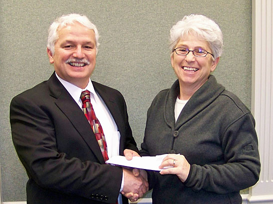 Van Wert Federal Savings Bank recently donated $500 to help build a concession stand/restroom/storage facility at Jubilee Park. Here, Van Wert Federal President Gary Clay (left) presents the check to Van Wert Parks Director Sue Heppeard. (photo submitted)