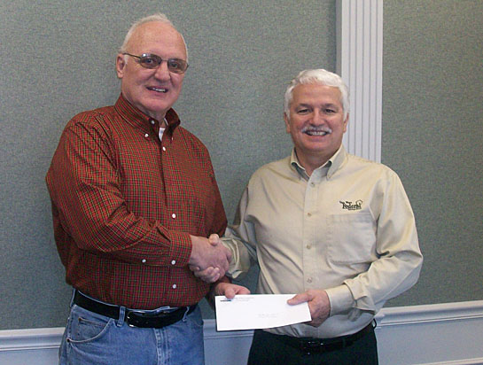 Gary Clay (right), president/CEO of the Van Wert Federal Savings Bank, presented a $1,000 donation to Larry Webb, chairman of the Van Wert County Park District. The money will be used for phase II of the county’s bike trail. (photo submitted)