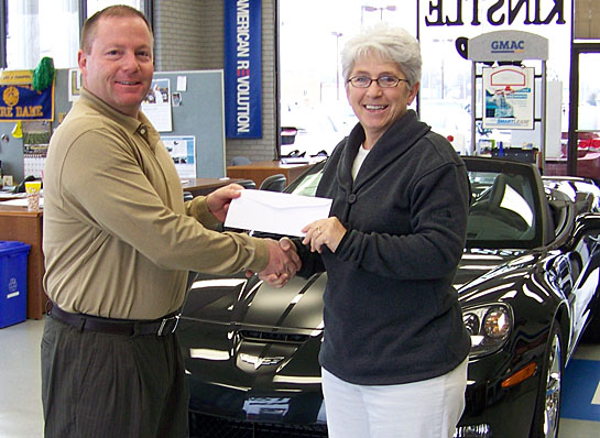 Eric McCracken, representing Van Wert Youth Baseball, is shown giving a check for $1,000 to Van Wert Parks Director Sue Heppeard. The organization is donating the money to help defray the cost of building a concession stand at Jubilee Park. The new concession facility will serve the existing ballfield at Jubilee Park, as well as a new ballfield being constructed for Van Wert Youth Baseball games. Donations are still being taken for the project. Call the parks office at 419.238.9121. (photo submitted)