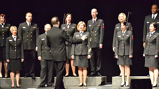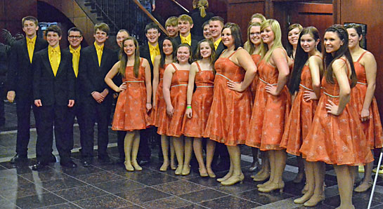 The U.S. Navy Sea Chanters (above) performed during a free concert held Wednesday evening at the Niswonger Performing Arts Center of Northwest Ohio. The concert was enjoyable, and those who got there early also had the chance to hear Crestview’s Knight Vision show choir (below) perform in the upper lobby of the NPAC. (photos by Dave Mosier/Van Wert independent)