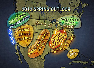 More frequent bouts of rain and severe weather will migrate northward to the mid-Mississippi and Ohio valleys, which were not hit as hard as the Deep South in 2011, mainly during April and May.