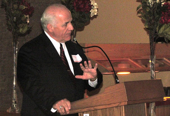 Van Wert County Common Pleas Judge Charles D. Steele provides a report on a renovation project in his courtroom, as well as historical information about the Courthouse during Monday evening’s annual dinner of Main Street Van Wert. The annual event, held at the Black Swamp Bistro, was well attended. (photo by Susan Munroe for the Van Wert independent)