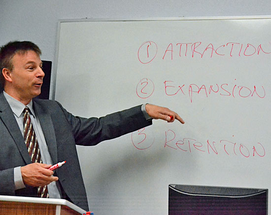 He then talked about expansion – helping an existing company increase its workforce and facility, and finally about retention, which he said resulted in most new job creation.