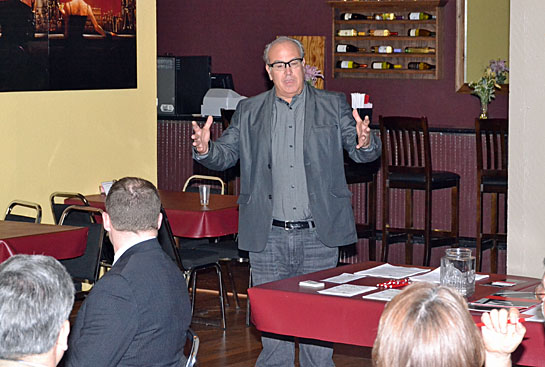 Local business people had the chance to do some networking and also learned about customer service from Andy Godwin of RG Communications (above) during the first of a series of quarterly Chamber Coffees hosted by the Van Wert Area Chamber of Commerce. The first event, sponsored by The Van Wert independent, was held at the Black Swamp Bistro. (Dave Mosier/Van Wert independent)