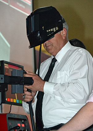 State Senator Cliff Hite learns welding on a new virtual reality teaching machine recently purchased by Vantage Career Center. (Dave Mosier/Van Wert independent)