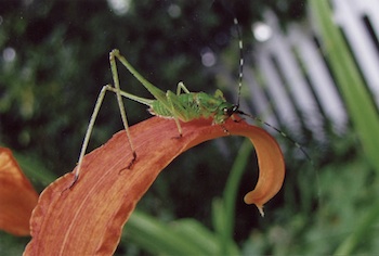 Voting on prints produced a two-way tie for first, but Will Hawkins wasn’t worried, they were both his. On the re-vote, his picture of a katydid on a tiger lily was picked for first place and the picture of a snowflake was second. Virginia Thatcher’s photo of blossoms in her back yard was a clear winner in the slide category.