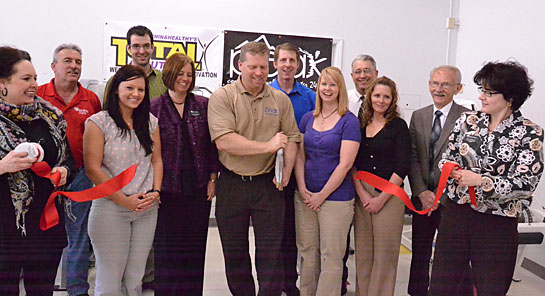 Owner Jeff Schwieterman cuts the ribbon Thursday as part of a grand opening for his Peak Community Wellness Center housed at the YWCA of Van Wert County. The center will be open 24/7 and includes updated fitness gear as well as the Thin and Healthy Total Solutions program. Learn more about the center by calling 419.238.0436 or emailing peak24hrfitness@aol.com. (Dave Mosier/Van Wert independent)