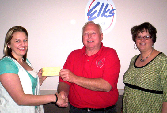 Van Wert Lodge 1197, Benevolent and Protective Order of Elks, recently made a financial donation to the Van Wert County Relay for Life. The donation of $100 was made in memory of Melissa Baker, who died from cancer in December 2010. Baker was a former employee of the Van Wert Elks Lodge and fought a courageous battle against cancer. She will be remembered by family and friends at this year’s Relay for Life, scheduled for May 4 at the Van Wert County Fairgrounds. Baker’s father-in-law is a member of Van Wert Elks Lodge 1197. Accepting the check from Lodge Exalted Ruler Fred Fisher (center) are Sara Buuck (left) and Cara Rice, both members of the Melissa Baker Relay For Life Team “Black Attack”. (Elks photo)