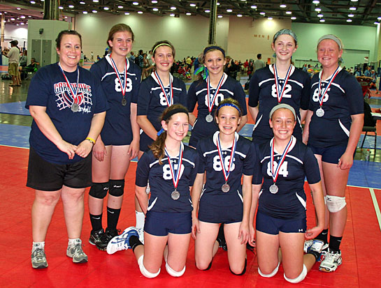 The Grandlake Nessies club volleyball team wrapped up its season this past weekend, finishing second in the Silver Division at regionals in Columbus; overall, the team was 10th out of 144 teams there on Saturday. During the regular season the Nessies won gold in two tournaments and finish the season ranked 18th out of 186 teams in the Ohio Valley Region. Team members include (front row, from the left) Emily Otte (Marion Local), Katie McClure (Lincolnview), Maddie Griesdorn (Marion Local); (back row) Coach Brandi Trentman, Katlyn Wendel (Lincolnview), Ashley Dealey (Crestview), Sydney Bowen (Crestview), Devin Post (Fort Recovery) and Macey Griesdorn (Marion Local). (photo submitted)