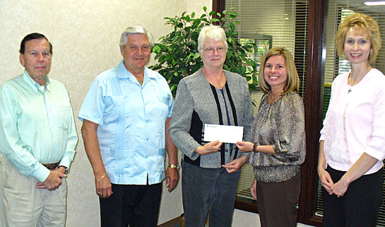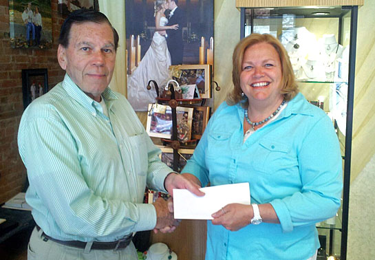 Two donations, worth a total of $1,500, were given to members of the Hot Air Festival Committee recently. In the photo above, Sherry Fetzer of Fetzer’s Jewelry in Delphos presents Bob Ainsworth, Hot Air Festival Committee member, with gifts of jewelry to be raffled off at this year’s Hot Air Festival. In the photo below, First Federal sponsors a balloon in this year’s Hot Air Festival. Receiving the sponsorship award are (from the left) Festival committee members  Ainsworth, Jerry Mazur and Ann Marshall (chairperson), while First Federal’s Suzie Grimes (second from right) and Rhonda Belt present the check. (First Federal President/CEO Brian Renner took the First Federal photo)