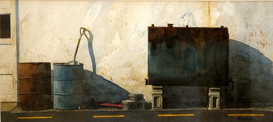 Most importantly we’d like to thank the almost 200 artists who came from a large regional area including Indianaof Toledo, eastern Ohio, Michigan and as far as Colorado to participate in this proud tradition. It is always my favorite part to announce awards. Honorable mentions went to: Ruth Green, Decatur for The Alley Cat in Me; John Rausch of Wapakoneta, Reclining Nude; Allen Hutton of Toledo for Tuttles; James Harp of Payne for Tea for Two. The David Humpherys Miller award for best oil painting was awarded to Austin Cartwright of Fort Wayne for The World Waits for You. One of the three Wassenberg Art Center awards went to Janealla Smalley of Findlay for Who Needs a Boat? Another went to Gwen Gutwein of Fort Wayne for Too Big and to Larry Golba of Toledo for Poppy Avenue. The Ross-Wallace Memorial Award went to Gary Hovey of New Knoxville for a sculpture of a bear created out of welded spoons, Ursus Minor. Marilla Connors Memorial Award supports the best watercolor and was presented to Doug Eblen of Celina for Sedona Sunrise Special. Art-to-Art Palette Awards went to Mike Kozumplik of Sherwood for jewelry and Erin McMillan of Van Wert for a glass vase. The Robin Carol Cartwright Award for best rendition of children or animals went to Mike Taylor of Van Wert for his portrait of a spunky black and white dog, Gabby. The Marguerite Fryer Award is awarded to a Van Wert County resident and went to Mike Klutka of Grover Hill for his wooden jar entitled Santa Fe. Douglas Edward Koch Memorial Award went to John Rausch for a charcoal drawing, Male Nude Reclining. Laura Barnhardt Corle of Findlay won the Vera Woodruff Wassenberg Award for her tiny, highly detailed watercolor of a Hancock County Moonrise. Isaac Smith of Bowling Green was awarded The Charles F. Wassenberg Award for a colored pencil drawing entitled Red Ring of Death and the Van Wert County Foundation’s Grand Award was awarded to Allen Hutton of Toledo for Autumn Shadow. Hutton has a natural ability to look at common everyday scenes we pass by without a second glance and turn those scenes into the interesting play on light and composition that they actually are. These scenes not only deserve a second glance but Hutton’s techniques demand a longer study.