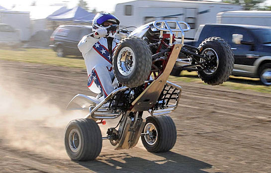 The Rally in the Corn got underway Thursday with a ribboncutting in the morning and official opening ceremonies early Thursday afternoon. A number of bands will perform over the next three days, along with a number of special events and activities (see story in Thursday’s independent). Above, Rally in the Corn organizer C.J. Van Wart gets ready to cut the ribbon on the event, while Henry “The Pitbull” Rife pops a wheelie on his four-wheeler during events on Thursday. (photos by Dave Mosier and Jan Dunlap/Van Wert independent)