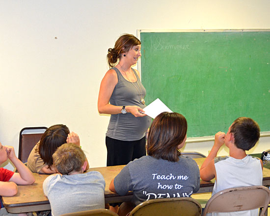 YWCA facilitator Jamie Evans (standing) presents information on suicide prevention to kids ages 10-17 participating in the YW's Summer Food Program this year. (Dave Mosier/Van Wert independent)