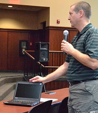 Butler touted the advantages of a Lenovo netbook computer students in the New Tech program would be using this year. Board members also used the computers to access board information during the meeting as part of the district’s “paperless” initiative.