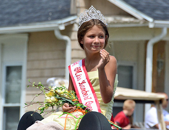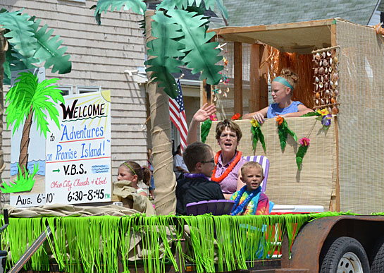 Abbi Marbaugh (top), this year’s Miss Lambert Queen, waves to the crowd during Sunday’s Lambert Days Parade in Ohio City. Below, the Ohio City Church of God float promotes its Vacation Bible School. (photos by Dave Mosier/Van Wert independent)
