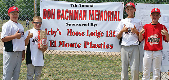 Van Wert Youth Baseball players give a big “thumbs up” to the recent sponsors (Arby’s, Moose Lodge and El Monte Plastics) of the seventh annual Don Bachman Memorial Baseball Tournament. The tournament featured a total of 26 teams in three divisions (10 & under, 12 & under, and 14 & under). (photo submitted)