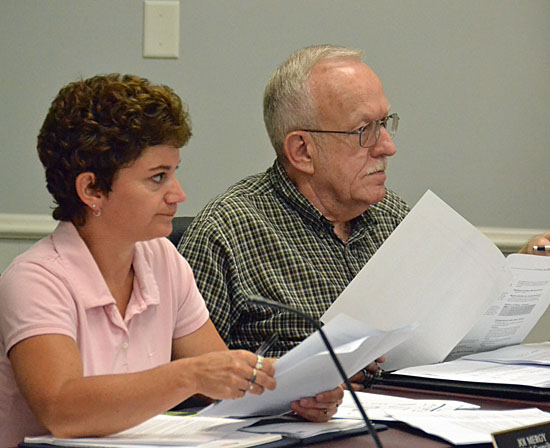 Finance Committee Chair Joi Mergy and First Ward Councilman John Marshall listen to ideas for raising additional city revenues on Monday night. (Dave Mosier/Van Wert independent)