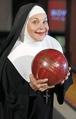 Things do not go as planned, as The Sisters must contend with announcements from the bowling alley public address system as well as the activity on the lanes.  However, The Sisters catch wind of the fact that the movie producer, James Todd, is across the street auditioning for roles in his new movie musical about the life of Dolores Hart, the famous movie star who became a nun.