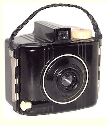 The club has received a large number of photography pieces. Joan Giessler donated Elmer’s Baby Brownie camera, which was manufactured between 1939 and 1954. It used 127 film.
